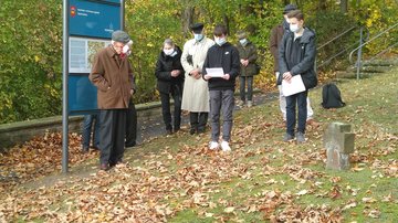 Genau das betonten Maxime Schwenzow und Dustin Ebbighausen – Schüler, die an der Geschichts- und Erinnerungstafel gearbeitet hatten: