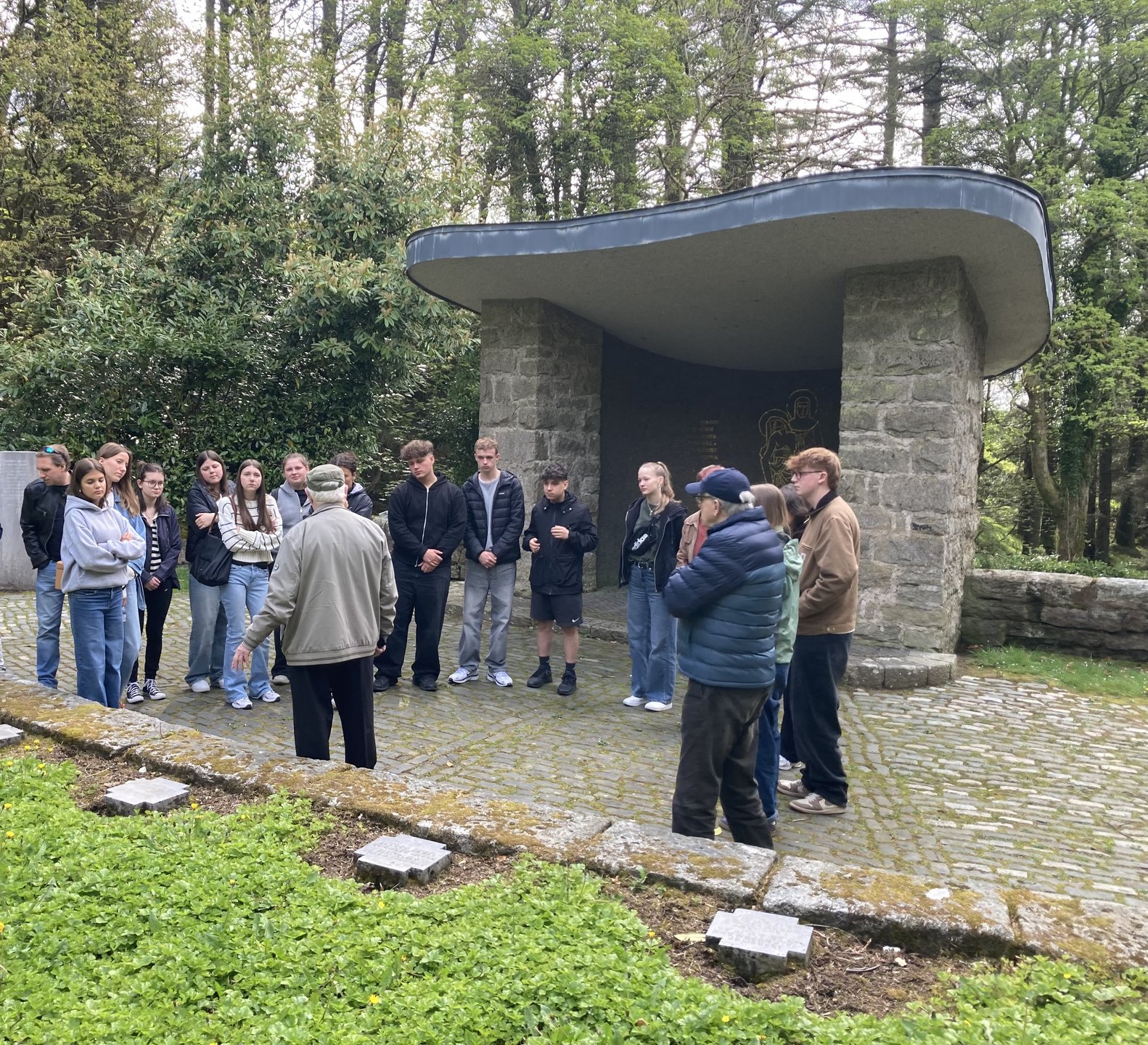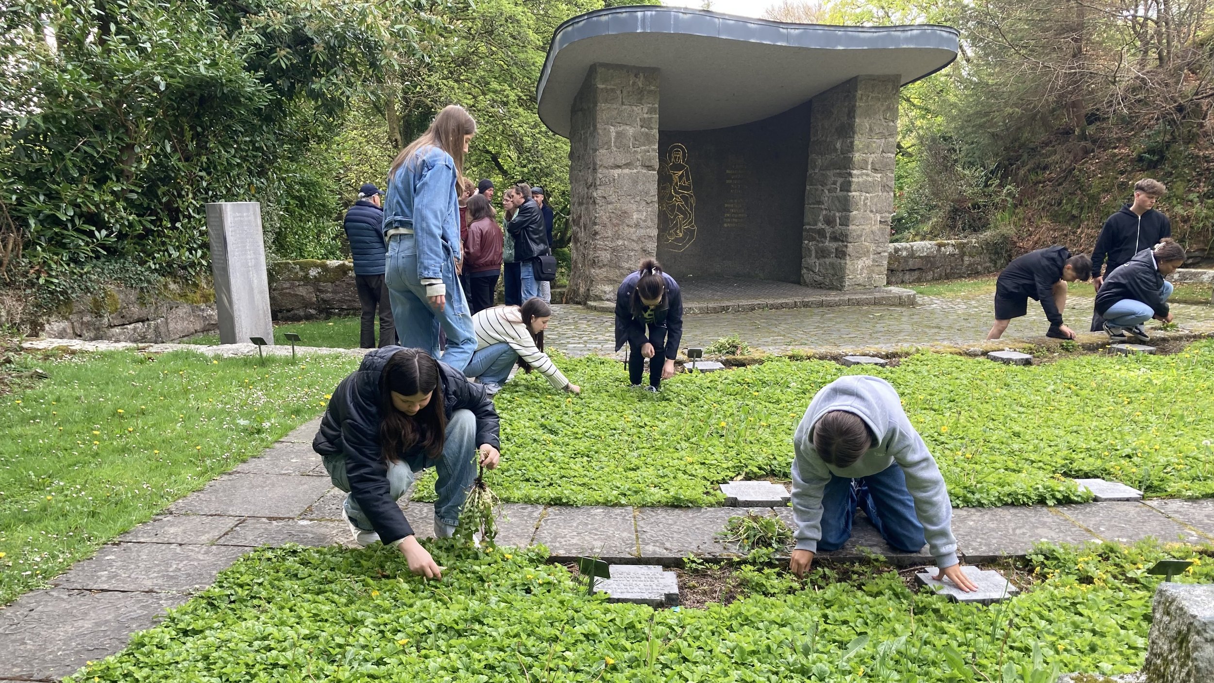 Während des Besuches des Friedhofes herrschte eine Atmosphäre gefüllt von Stille und Stolz, da die Schülerinnen und Schüler sahen, dass Besucher ihre QR-Codes scannten und lasen. Mittlerweile stehen elf QR-Codes zum Lesen bereit. Vor Ort trafen sie wieder auf den Historiker Frank Tracy, der bereits Materialien für neue Biografien bereitstellte, und den Gärtner Justin Smith. Außerdem säuberten sie den Friedhof, indem sie das Unkraut zwischen den Gräbern entfernten.