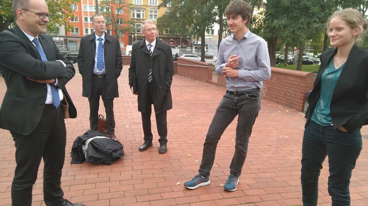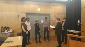 Das Engagement der Schülerinnen und Schüler ist ohne die Unterstützung durch aktive und interessierte Padagoginnen und Pädagogen und ohne eine Schule, die die nötigen Freiräume dafür schafft, unmöglich. Darum wurden auch ihr Geschichtslehrer Dr. Gustav Partington und ihre Schule, das Gymnasium Neue Oberschule, ausgezeichnet.