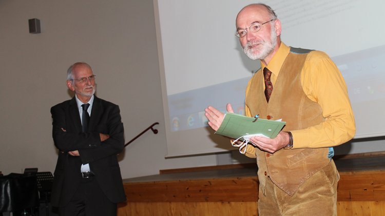 Auf diese Frage gab Prof. Dr. Gerd Krumeich mit dem Abendvortrag „Die unbewältigte Niederlage und der große Hass: Deutschland 1918 – 1933“ im Forum des Roswitha-Gymnasiums eine Antwort. Er zeigte, wie es im Gegensatz zur Dritten Französischen Republik der Weimarer Republik nicht gelang, ein Totengedenken zu etablieren, das alle gesellschaftlichen Gruppen integrierte. Wie in einem Stellungskrieg standen sich die verschiedenen Gedenkkulturen der Rechten und der Linken, der Feinde der Republik und der Anhänger der Republik, einander gegenüber, bis schließlich die Nationalsozialisten mit der Würdigung des Opfers der Soldaten propagandistische Erfolge feiern konnten.